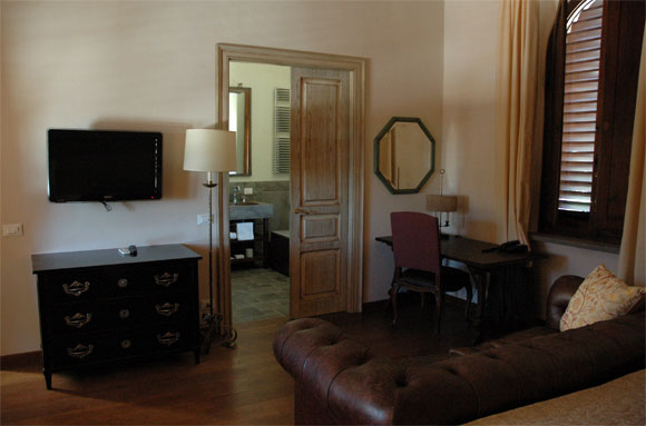 Недалеко от входа в отель очень просто одетая пожилая дама кормила кошку. Я сначала подумал, что это какая-то постоялица, однако подошедшая менеджер объяснила, что дама - маркиза, чья семья владеет этим отелем. Она живет в La Suvera с мужем (самого маркиза мы также видели - пожилой синьор в костюме), они занимает отдельные апартаменты на первом этаже.