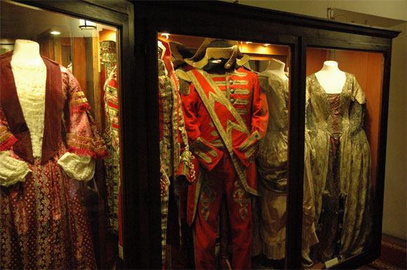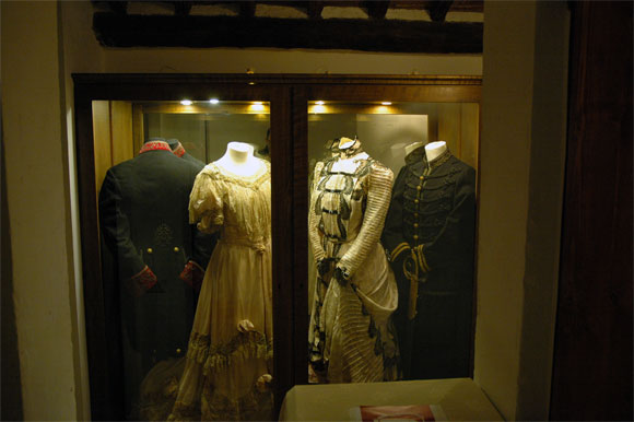 На третьем этаже в коридоре обнаружилась очень интересная коллекция старинных костюмов. Гид рассказала, что это личная коллекция семьи владельцев замка.