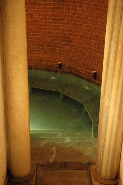 Во дворе - большой бассейн. Он устроен на месте пруда, где когда-то разводили карпов для папского стола. Вода в бассейне подогреваемая.