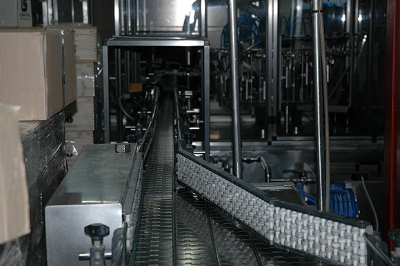 Наклейка этикеток и упаковка бутылок с вином в коробки происходят на автоматической линии.