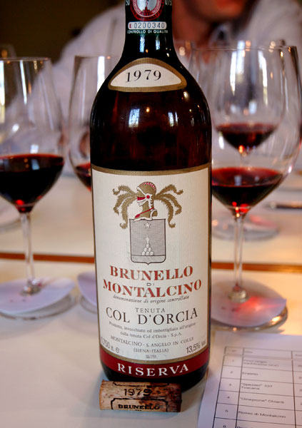 Граф объяснил, почему именно 1979 год. На протяжении всей истории производства Brunello энологи пытались выяснить, какой срок выдержки для него оптимальный. Ну, понятно, что это вино по определению выдерживается не менее пяти лет перед продажей. Понятно, что есть более удачные, есть менее удачные годы выпуска, в которых разбираются знатоки. Но чистая практика показала, как рассказал граф, что оптимальный срок выдержки для Brunello di Montalcino Riserva - это тридцать лет. К этому сроку вино расцветает в полную силу. Дальше оно тоже может лежать хоть до ста лет, но качество уже не улучшается.