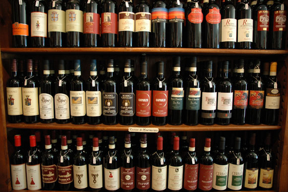 Левая стойка - Rosso di Montalcino. За 8-12 евро там можно было купить очень приличное вино.