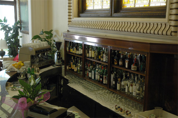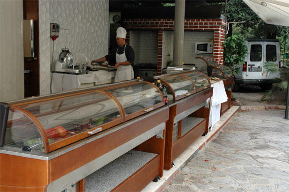 Кстати, у ресторана есть еще и летнее отделение, где в хорошую погоду накрывают завтрак. Мебель для этого отделения делалась специально для фильма Михалкова "Очи черные", который снимался в этом отеле.