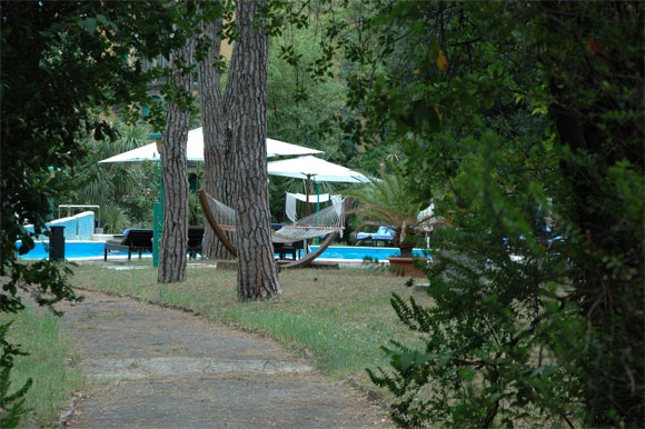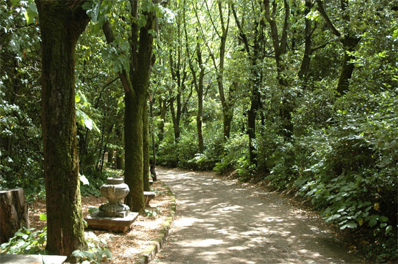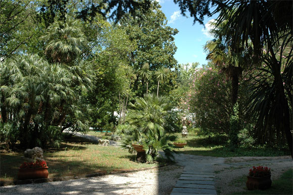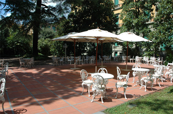 Когда выходишь во внутренний дворик, сначала кажется, что парк не особенно большой. Но когда начинаешь обходить его весь, понимаешь, что территорию он охватывает весьма значительную. Собственно, оно и неудивительно, ведь Grand Hotel e La Pace сам занимает целый квартал Монтекатини.