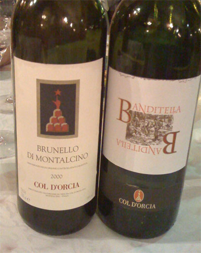 Но делать нечего, не возвращаться же в отель, поэтому сели, взяли меню. По меню, впрочем, все смотрелось не так уж и грустно - бистека, прошутто и прочие радости жизни присутствовали, винная карта также предлагала вполне достойные и даже интересные варианты, поэтому мы и заказали: прошутто, бистеку по-фиорентийски, а в качестве симфонии сопровождения - мою любимую Banditella Col D'Orcia (это Rosso di Montalcino - я даже делал анализ вкуса этого вина), ну и Brunello di Montalcion Col D'Orcia 2000 (нам предстояла встреча с владельцем Col D'Orcia, поэтому мы отдавали предпочтение именно этому производителю), которое в этом ресторане стоило более чем разумных денег - порядка 36 евро.