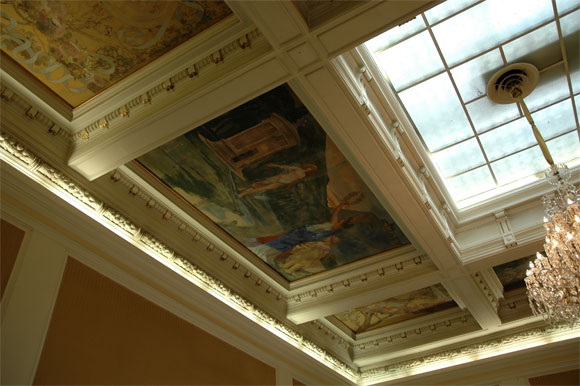 Несмотря на то что и здесь обстановка, как в музее (отличная мебель, картины на стенах, изумительная роспись на потолке), чувствуешь себя комфортно и уютно.