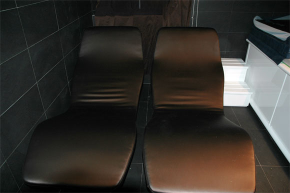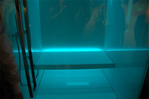 Вот эта кабина мне особенно понравилась. Туда можно загружаться вдвоем с подругой, после этого включается ароматерапия, хромотерапия, и при этом в специальном выдвижном блоке есть USB-порт, куда можно воткнуть свой MP3-плеер со своей любимой музыкой.