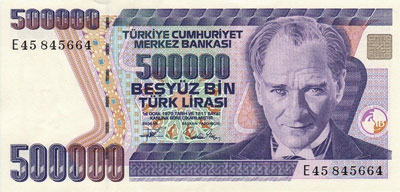 На всех бумажных купюрах, как старых, так и новых, изображен "отец турок" - Мустафа Кемаль Ататюрк. Считается, что, если купюра запачкалась или стала ветхой, ее нужно немедленно обменять в банке на новую, потому что изображение Ататюрка не может быть чем-то загрязнено или искажено. Так, по крайней мере, говорят гиды. Однако на практике замызганные и потертые банкноты попадаются достаточно часто.