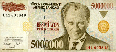 К счастью, турки сумели обуздать жуткую инфляцию, которая началась после экономического обвала 2001 года, после чего 1 января 2005 года провели деноминацию, разом оттяпав у своей лиры шесть нулей. Деноминированные единицы называются новая турецкая лира (YTL - Yeni Turk Lirasi), и курс сейчас составляет примерно 1,36 новой лиры за доллар. При этом считать местные тугрики сразу стало на порядок проще. Старые лиры, кстати, пока еще в ходу, поэтому не спешите радоваться, если у вас в руках вдруг оказалась бумажка в 500 000 - это примерно 30 центов.