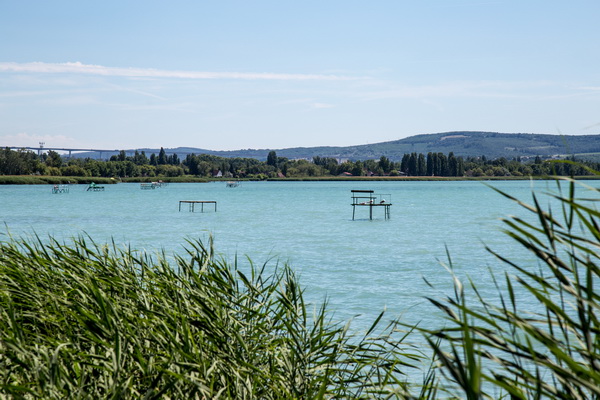 Пока ждали паром, полюбовались на находчивых балатонских рыбаков. Эти ребята умеют устроиться со всеми удобствами: видите помосты с сиденьями? Рыбаки идут туда пешком, залезают, садятся, выпивают рюмочку палинки, закуривают трубку, после чего уже можно заняться рыбной ловлей.