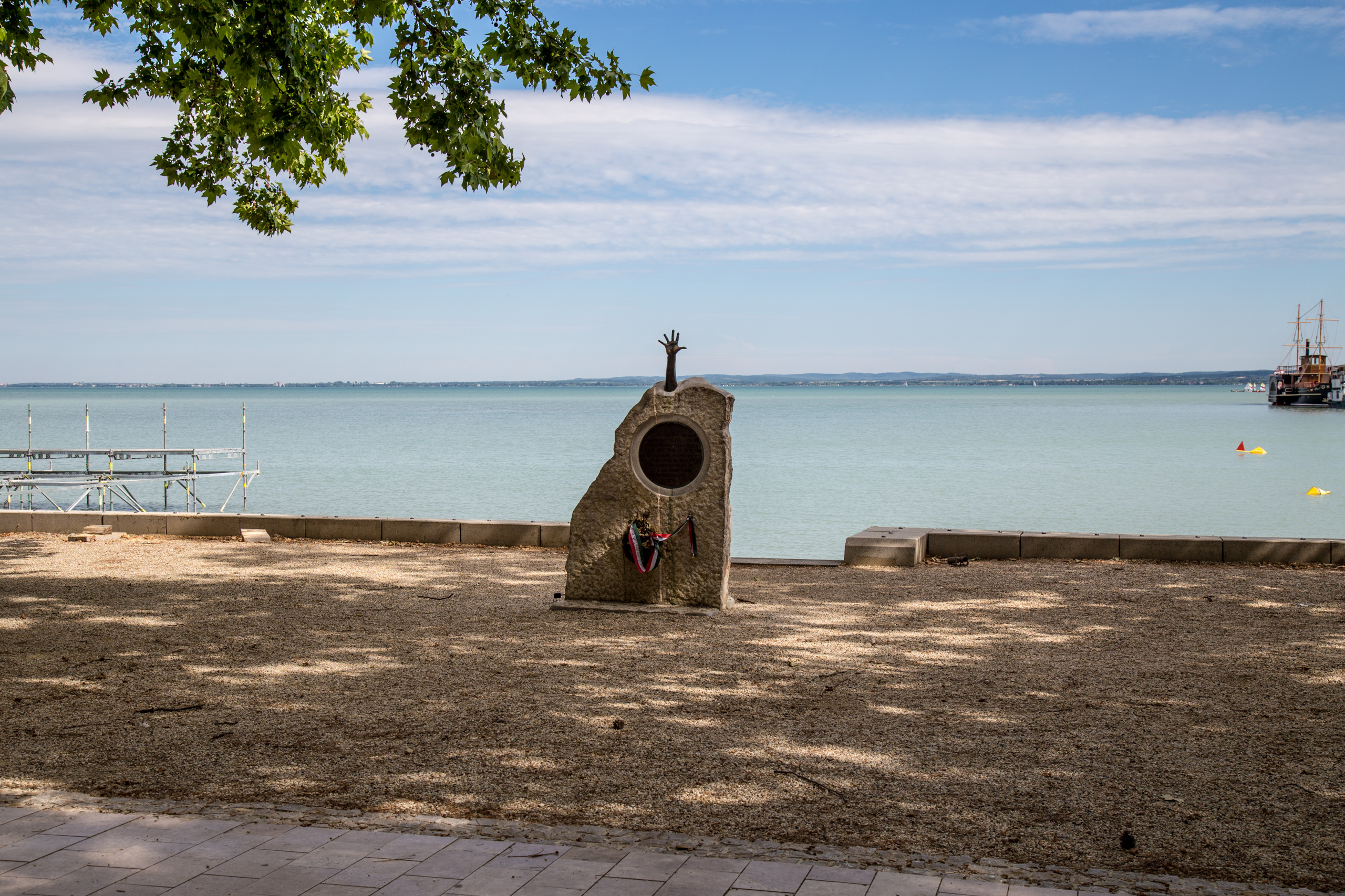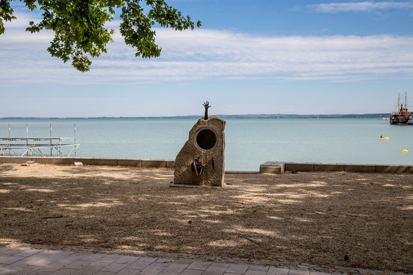 А этот памятник с торчащей рукой напоминает об одном трагическом событии. На Балатоне нередко дуют сильные ветры, также изредка случаются внезапные ураганные порывы ветра. И когда-то давно такой порыв ветра в хорошую солнечную погоду перевернул прогулочный кораблик, в результате чего много народу утонуло: мужчины были в костюмах, женщины - в пышных платьях с кринолинами, выплыть было нереально.