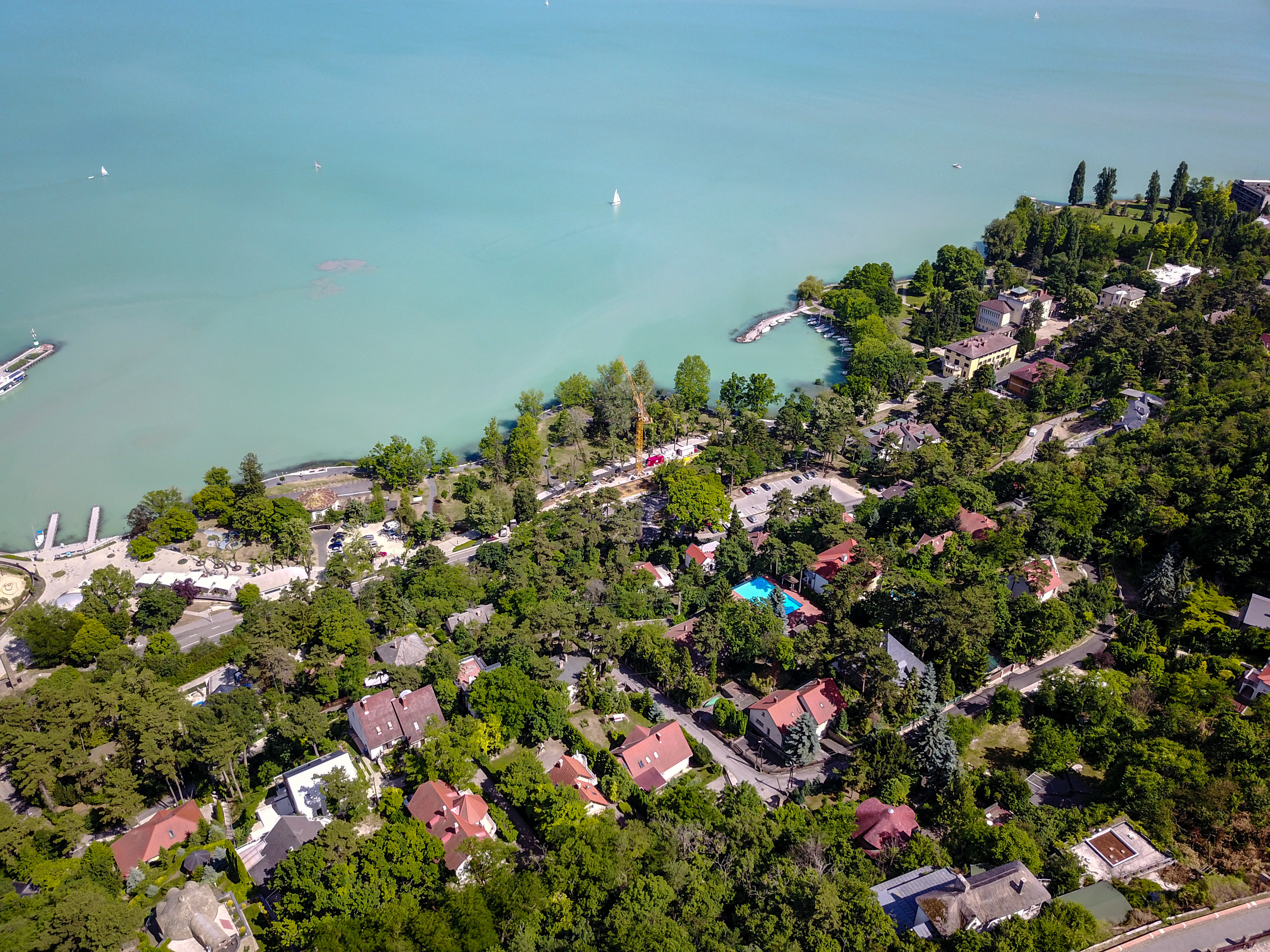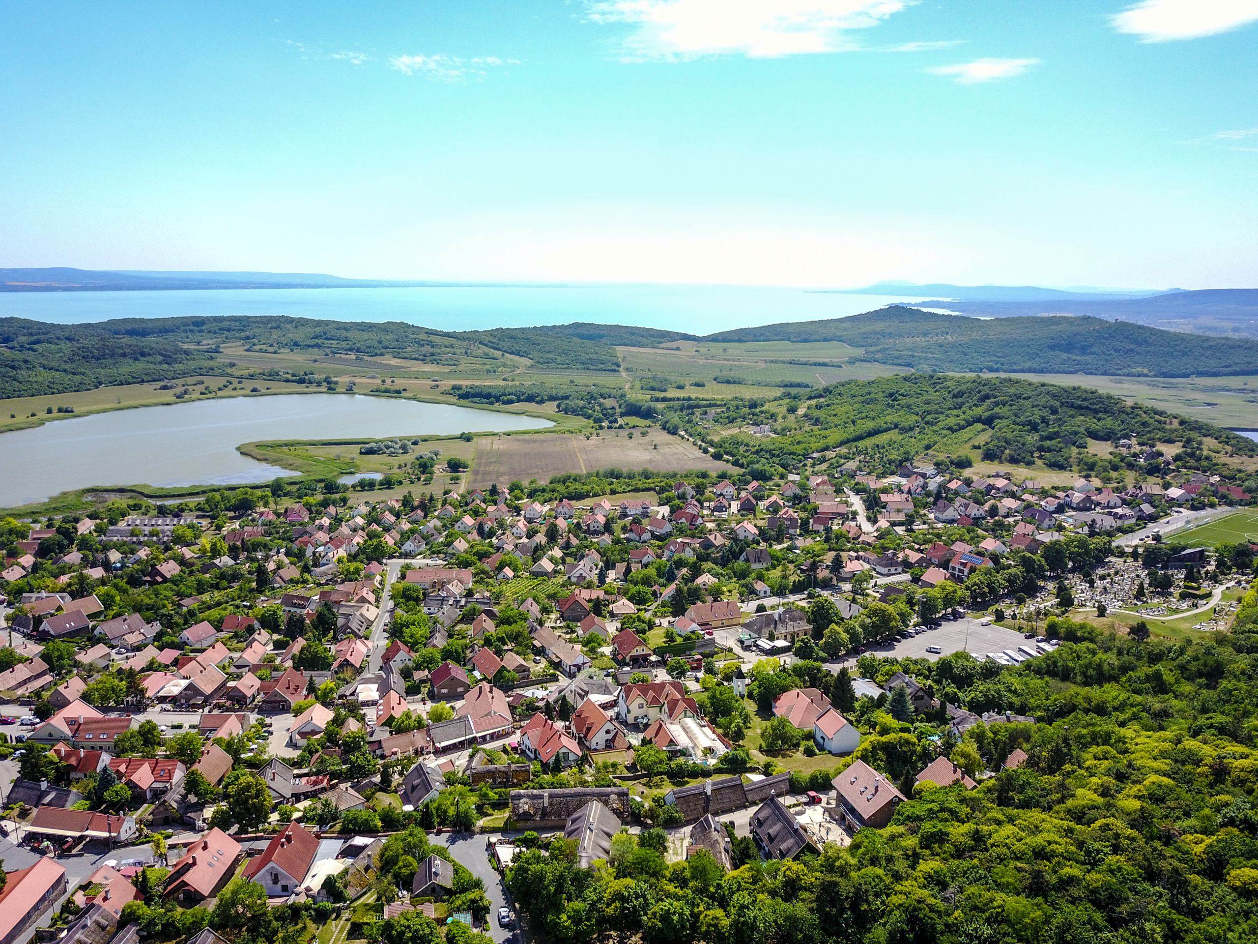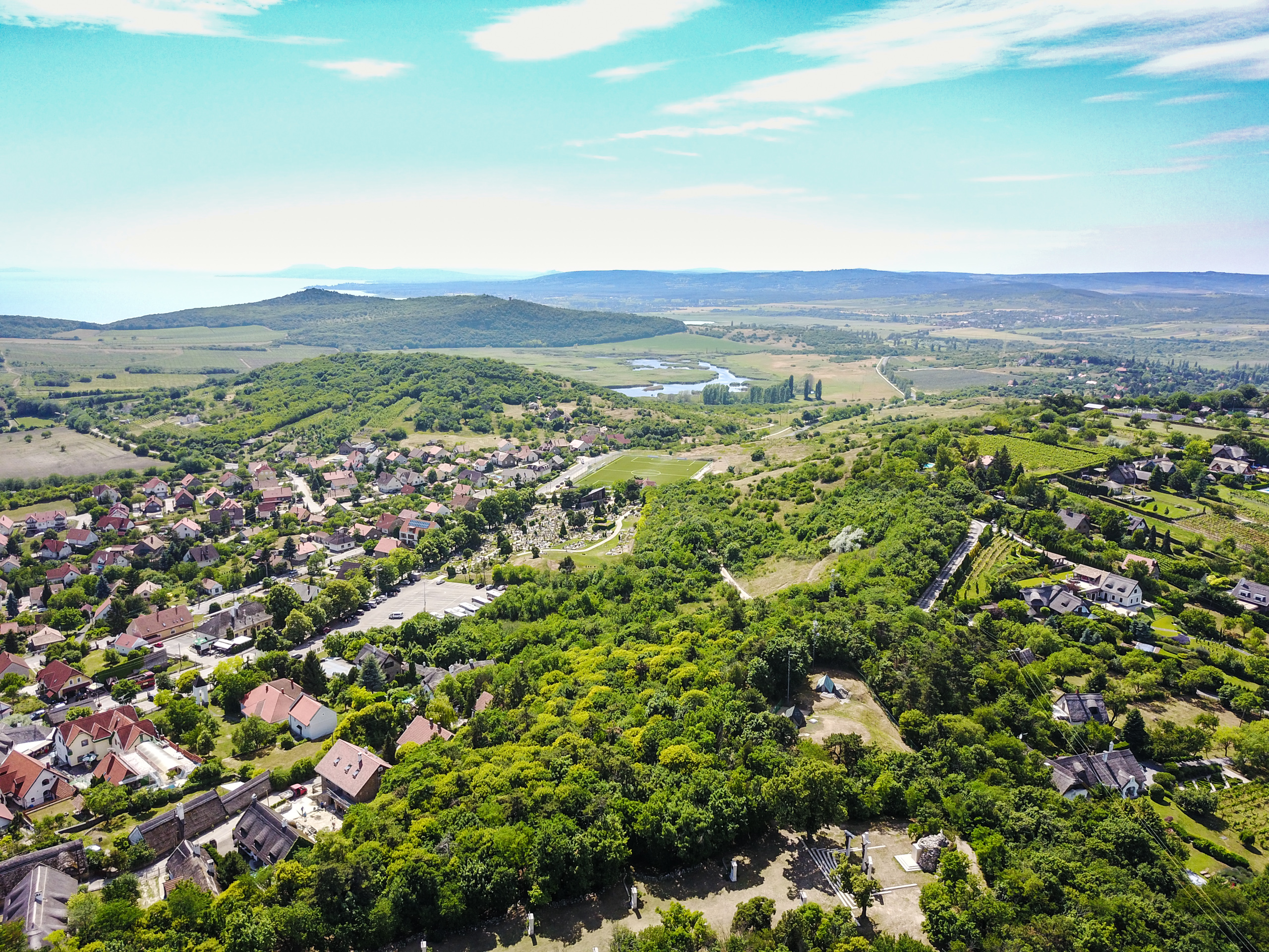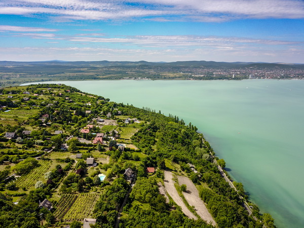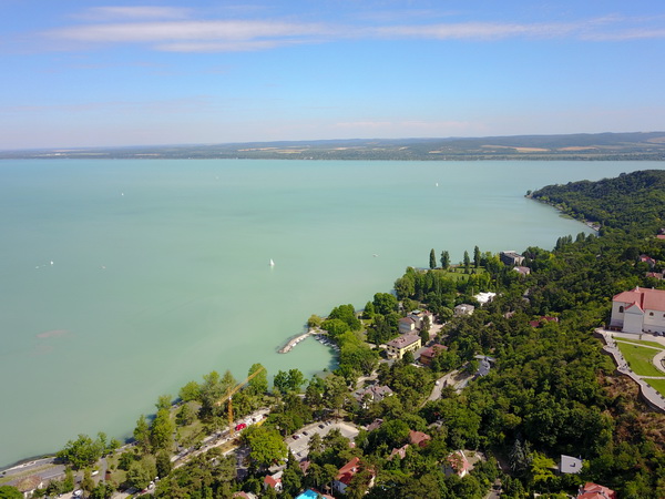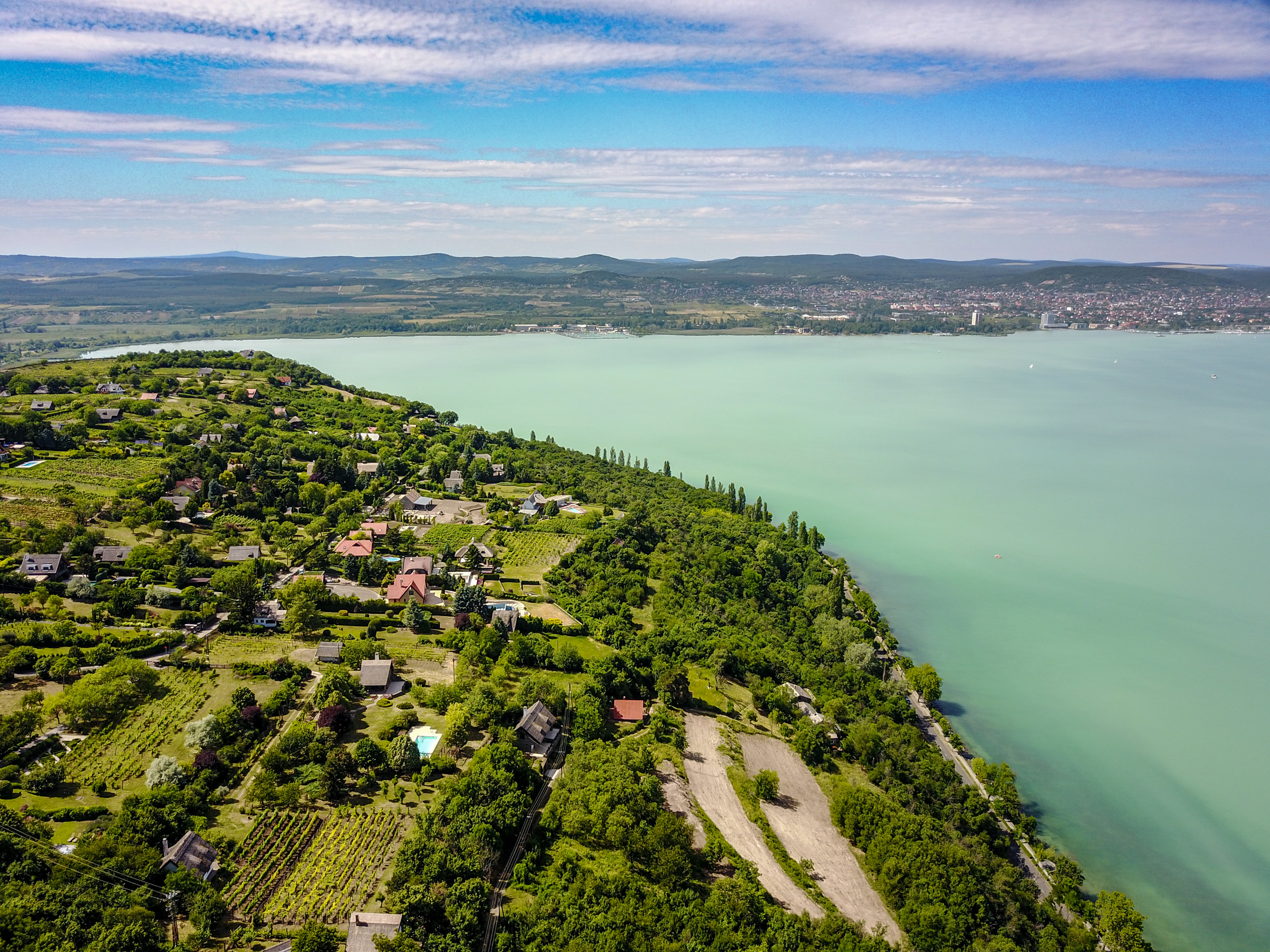На полуострове Тихань я немного погонял квадрокоптер. Вот виды с высоты на Балатон и городок Тихань.