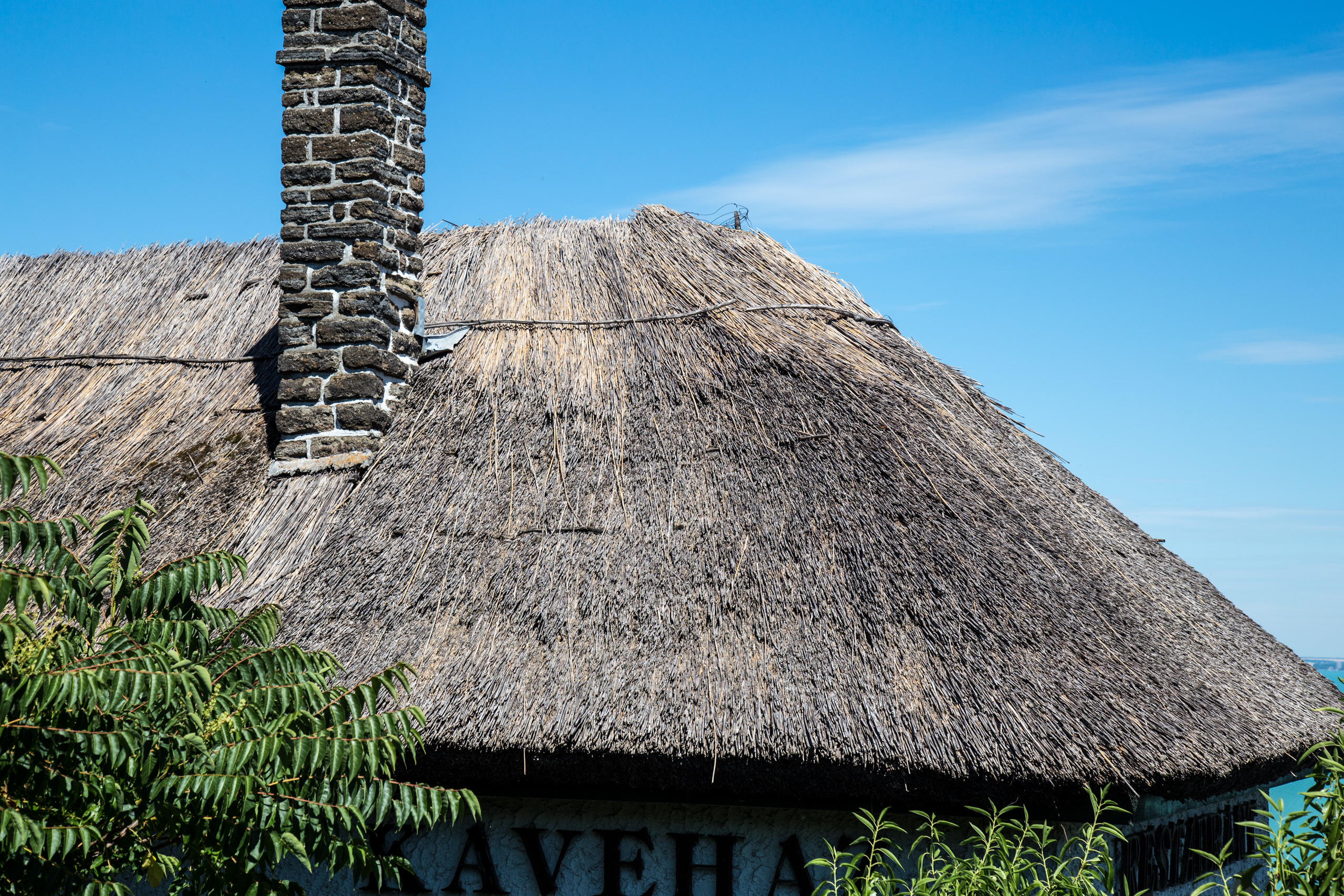 Знаменитая тиханьская камышовая крыша - тут многие дома покрыты камышом. Дешево, экологично. Но раз в двадцать лет покрытие надо менять, так что камыши на полуострове находятся в постоянной опасности.