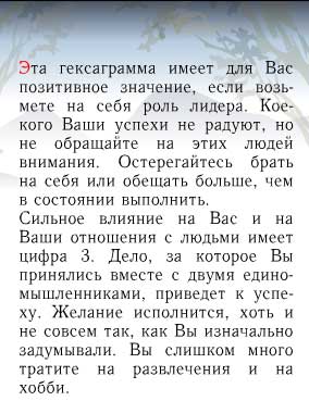 ![]() Как гадать? Очень просто. Формулируете свой вопрос, шесть раз подбрасываете монетки в воздух (виртуально, разумеется), после чего смотрите получившиеся в результате подбрасывания гексаграммы и читаете рекомендацию из "Книги Перемен". Я задал вопрос: "Долго ли еще кот Бублик будет испытывать мое терпение?", честно пошвырял монетки туда-сюда, а затем получил следующий ответ: Думаете, фигня фигней? Ничего подобного! Наоборот, я просто поражен точностью ответа. Ведь там все понятно. Смотрите: 1) Если я возьму на себя роль лидера (то есть пинками заставлю кота Бублика меньше хулиганить), то он начнет меня хоть чуть-чуть слушаться. 2) Бублика не радуют мои успехи на конкурсе ЗРИ, но если я на него не буду обращать внимания, то все будет в порядке. 3) Я должен остерегаться брать на себя обязательства вернуть Бублику некоторые части его тела, потому что вряд ли смогу это выполнить. Тем более, что он уже совсем успокоился и забыл, что эти части тела у него были. К тому же, ему теперь ничто не мешает танцевать до упаду. 4) Сильное влияние на меня имеет цифра три. Три бутылки пива, три бокала виски, три тополя на Плющихе, тридцать три зуба и коровы. Так что все правильно. 5) Дело, за которое я принялся с двумя единомышленниками (Марией и Норвежским Лесным), приведет к успеху. Так и есть! Мы как раз сегодня вечером наметили сожрать здоровенную пиццу! И я уверен, что это дело приведет нас к успеху - пицца будет уничтожена. А если что-то и останется на поле боя, то остатки уничтожит все тот же кот Бубель. Он это умеет. Его хлебом не корми - дай сожрать что-нибудь. Так что, как видите, все правильно. А теперь - вперед! Задавайте свои вопросы и получайте на них всякие мудрые ответы. Вопрос-ответ, вопрос-ответ, ответ-вопрос! Главное - не перепутать очередность. ***