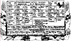 "...Логическим завершением этого пути стала, приснившаяся Менделееву в 1843 г. во время голодного сна периодическая система пищевых элементов.  В чем основная заслуга Менделеева? Она в том, что он впервые расставил элементы по возрастанию сытности, а не по алфавиту, или, скажем, цене. Такой подход позволил выявить интересные закономерности. Так, в З-ей группе, начинающейся с сыра (Sr), постепенно возрастает Т-плав и убывает Т-кип. В конце концов они сравниваются у гороха (Рu), который, как известно, существует лишь в твердом или газообразном состоянии. У последующих элементов уже Т-плав>Т-кип, а значит, они просто не существуют.