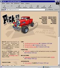 Я уже писал о нескольких подобных страницах, которые, как правило, сверстаны шкодливой рукой очередного васи пупкина, а тексты на сайте содержат по килограмму всевозможных ошибок на один квадратный сантиметр экрана, но данный сайт представляет собой приятное исключение. Во-первых - довольно неплохой дизайн. Его делал явно не вася пупкин. Одно только мне не очень осталось понятным - почему в качестве логотипа используется легкомысленная картинка древнего автомобильчика с пятью клаксонами и семью фарами... Хотя черт его знает. Может быть, автомобильчик символизирует собой дальнейшие действия пикапера, после того как объект пикапа припикапился по полной программе (боже мой! такого количества буквы "п" у меня до сих пор не было ни в одном предложении). Ну, типа, "увезу тебя я в тундру" и все такое...