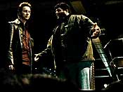 Натурель в исполнении Розарио Доусон мне не очень понравилась, а вот роли друзей Монти - Фрэнка и Джакоба - великолепны. Барри Пеппера (Фрэнка) я видел раньше только в дурацкой картине "Поле битвы - Земля", где он никак не мог себя проявить, но после "25-го часа" его уже спокойно можно считать очень и очень серьезным актером. Его Фрэнк - нервный, дерганный и очень циничный парень, который тем не менее практически единственный искренне переживает за Монти и действительно старается ему помочь. Филип Сеймур Хофман великолепен в роли Джакоба, этого похотливого толстяка с жуткими комплексами. Сцена, когда он остается один на один со своей ученицей в ночном клубе - изумительна.