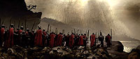 2. Фильм называется «300 спартанцев» – но в фильме даже массовки из 300 спартанцев по сути нет. Хорошо прорисовано и поставлено типажи от силы десятка воинов. Если бы режиссеру не размахиваться слишком сильно, а взять к примеру не 300 – а допустим 40 (сорок) спартанцев или даже 33 спартанца и царя Леонид, но проработать образ каждого более тщательно – фильм бы от этого только выиграл. Тридцать три воина которые противостояли 100 тысячной армии противника – более героический и весомый эпос чем 300 против 100 тысячной армии противника. Да и название звучало бы на порядок привлекательно. Например: "Царь Леонид и 40 спартанцев". Или: "33 спартанца и Царь Леонид".