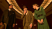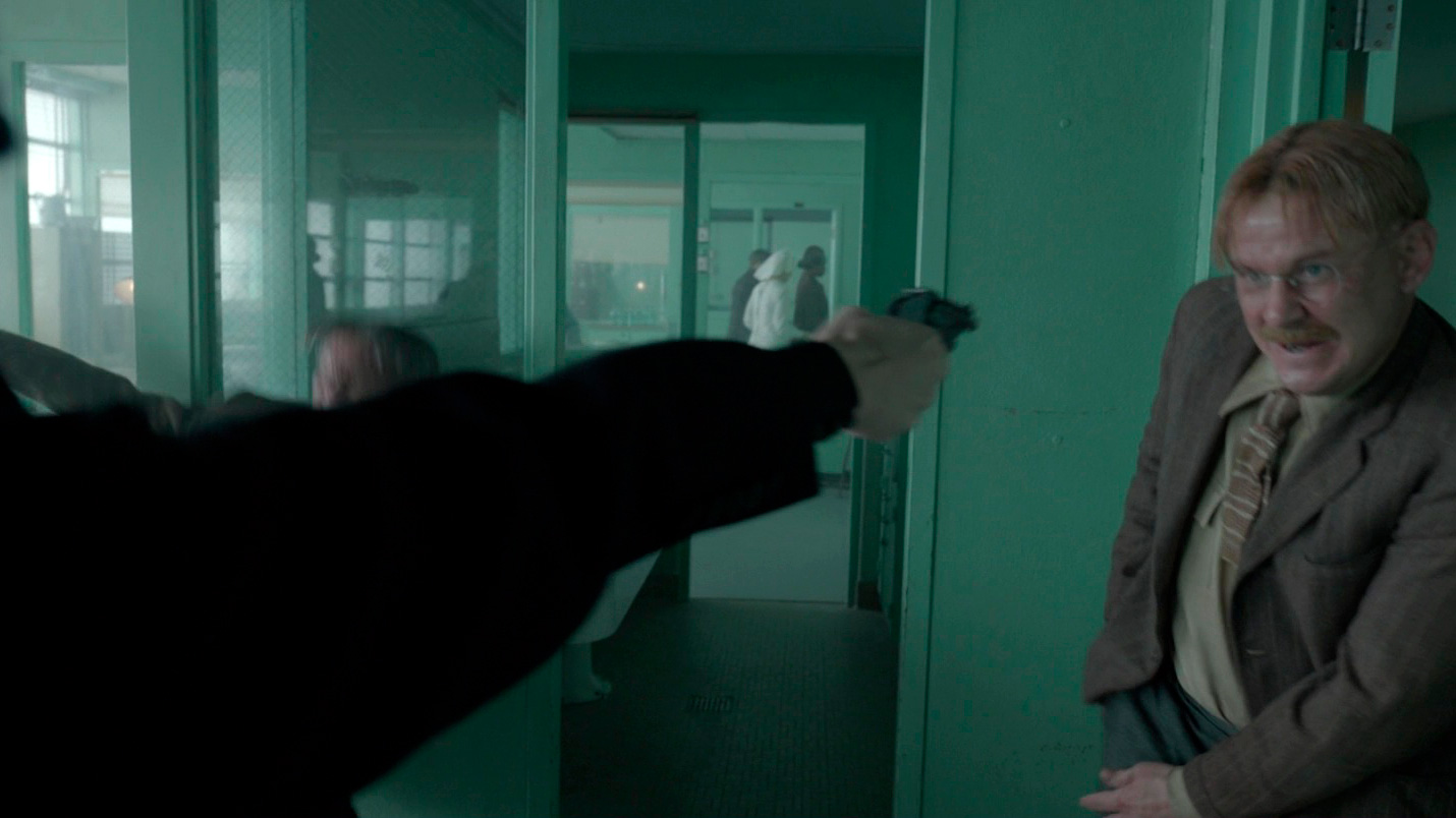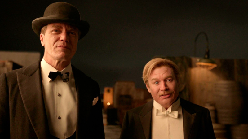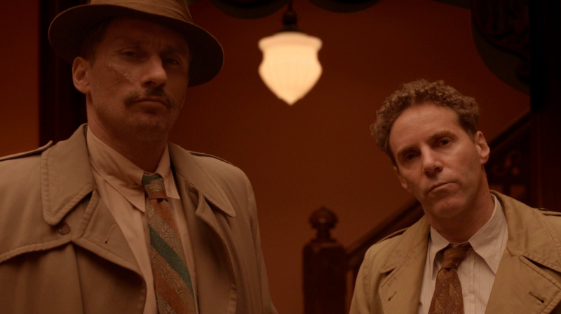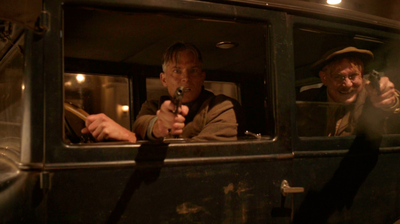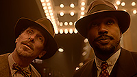 При этом постановщик очень старательно придерживается эдакого легкомысленного и даже балаганного стиля, временами впадая в конкретный фарс: Бэйл просто конкретно комикует, и стеклянный глаз его персонажа постоянно выпадает, а Валери (ее героиню Берт с Харолдом, конечно же, обнаружат) имеет проблемы с равновесием и часто падает. Берт, впрочем, тоже нередко падает, потому что продолжает экспериментировать с различными сильнодействующими препаратами. А еще герои тут временами исполняют забавные песенки или и вовсе комические куплеты - это тоже нужно учитывать.
