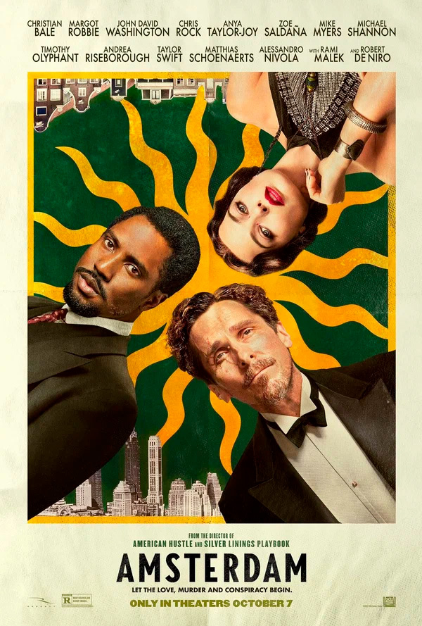 И вот теперь - "Амстердам". Типа как комедийный детектив, в основе которого лежат реальные события. Бюджет картины - $80 млн, что в два раза больше, чем бюджет "Аферы по-американски". В прокате фильм собрал всего $31 миллион по миру, что просто катастрофа, и даже срочная продажа прав на прокат картины стриминговым сервисам спасти ситуацию не смогла: вложившиеся в фильм студии потеряли на нем порядка $100 млн. Критика "Амстердам" растоптала: на Rotten Tomatoes рейтинг критиков - всего 33%, да и от зрителей картина получила только 62%, что, конечно, не "ниже плинтуса", но где-то на уровне "с пивком потянет".