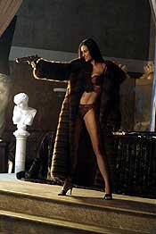 Четвертый плюс - второстепенные роли и камео (микроскопические роли известных актеров или просто известных людей). Джон Клиз - легендарный "Монти пайтон" - в последнее время довольно часто стал появляться в эпизодических ролях. Его появление всегда радует. В этом фильме у него совсем небольшая роль папаши, слегка огорченного профессией дочки, однако его неподражаемый "Хоре-е-е-ечек" уже приводит в восторг. Брюс Уиллис сыграл в микроскопическом эпизоде, причем его почти мгновенно убивают. Отличное решение для парня, который в своих фильмах перебил столько врагов, что и не сосчитаешь... Роберт Патрик - жидкий Терминатор - тоже порадовал. Правда, в этот раз он не растекался мыслью по древу, но зато стелился автомобилем по дороге.