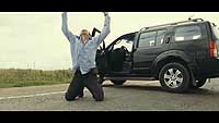 Но был в этом фильме один эпизод, который многое искупил. "Ниссан" главных героев остановился где-то в российской деревеньке, и рядом с ним встала древняя "Волга", внутри которой ругалась семейная пара в исполнении Харламова и Собчак. Мне понравилось, как это все звучало, особенно момент: