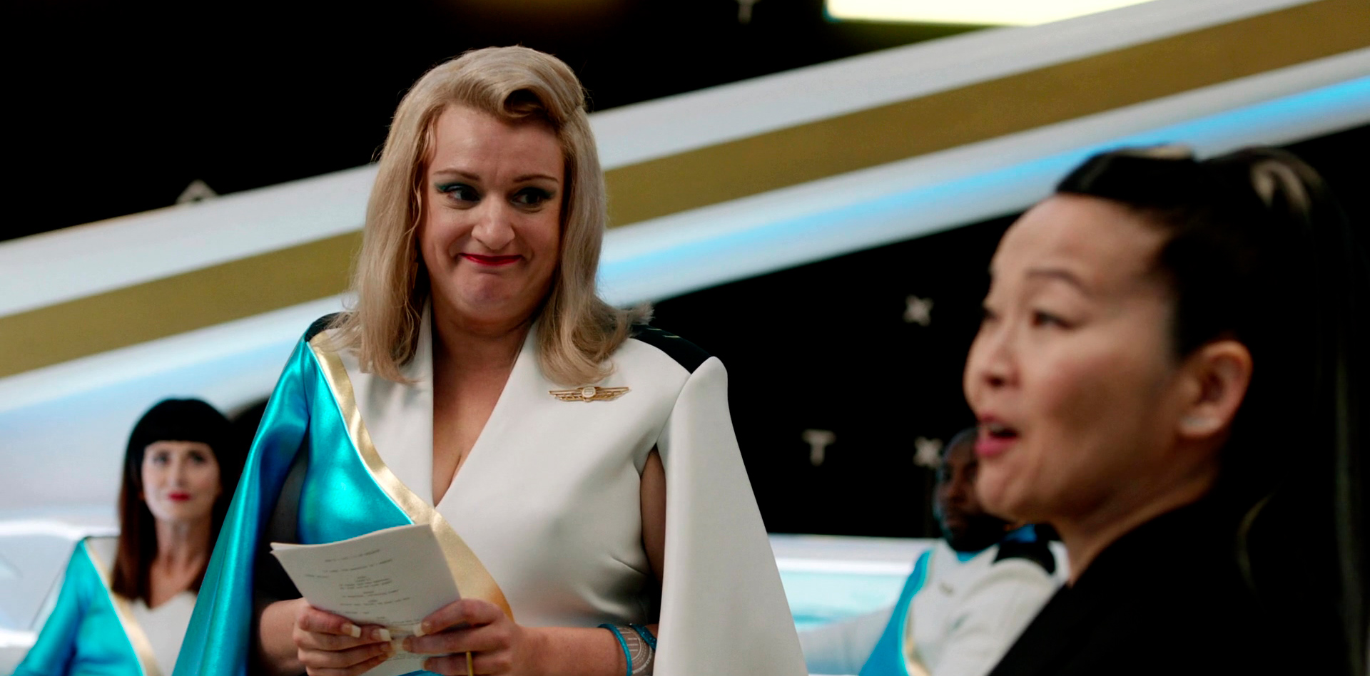 В какой-то момент выяснилось, что из-за некоей поломки погиб один из членов экипажа. Причем это был реальный капитан "Авеню 5", потому что Райан Кларк - просто актер, нанятый для исполнения роли капитана. А тут еще в результате кратковременного отключения искусственной гравитации у корабля изменился курс, так что вернуться на Землю он сможет только через три года.