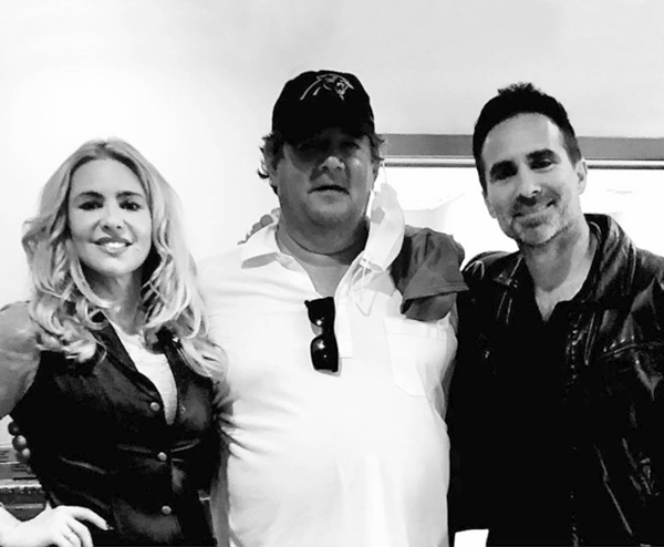 Вот Гилберт (в центре) с Оливией д'Або (она играет барменшу) и Нестором Карбонеллом на съемочной площадке.