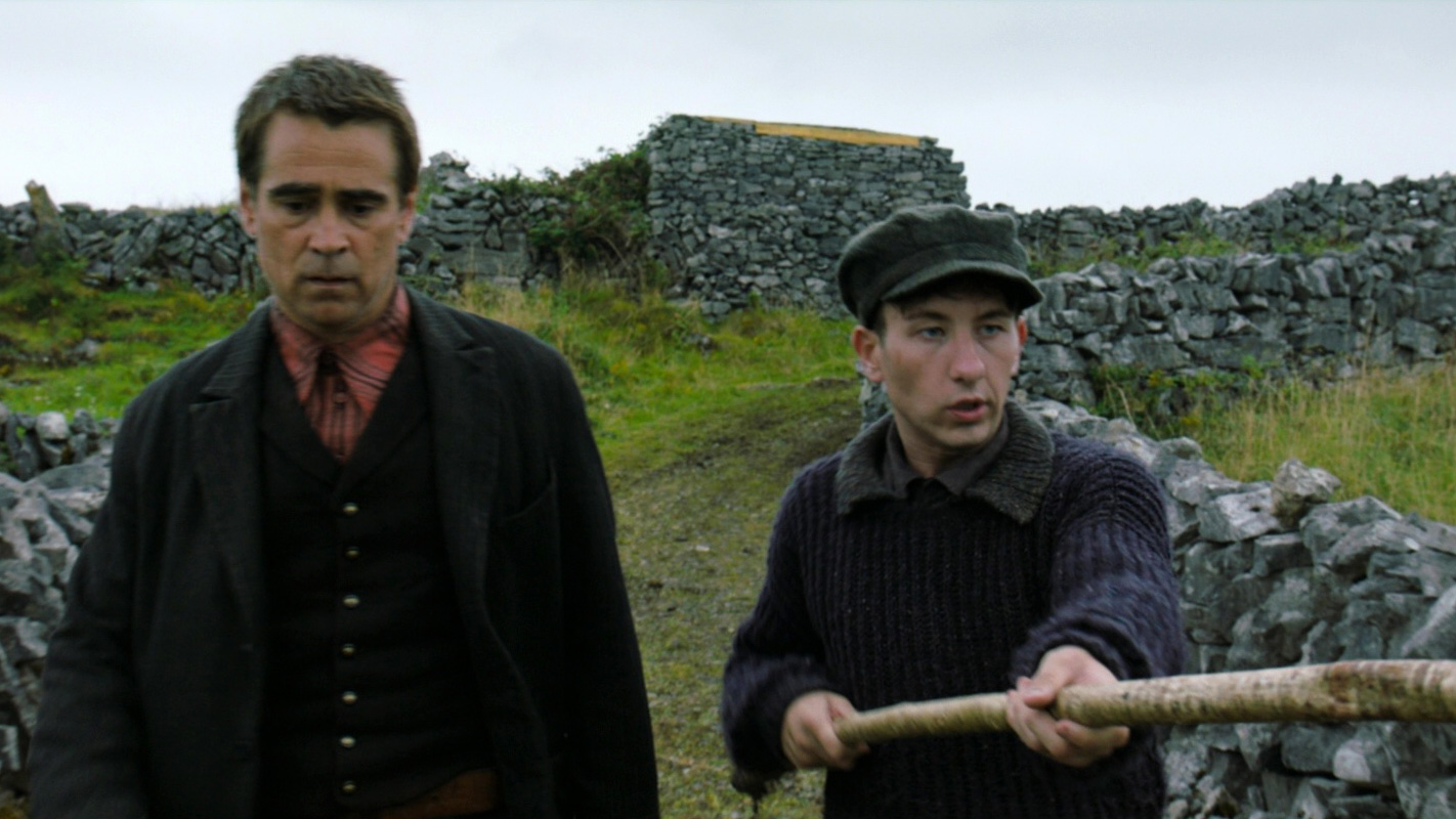 Колин Фаррелл в роли Подрика Суливана (его имя и фамилию Pádraic Súilleabháin в русскоязычных рецензиях как только не писали - и Патрик Салливан, и даже Падрайк Салливан, однако это ирландское имя произносится как Подрик Суливан или Подрик Суливейн, никак не иначе) - просто шедеврален!
