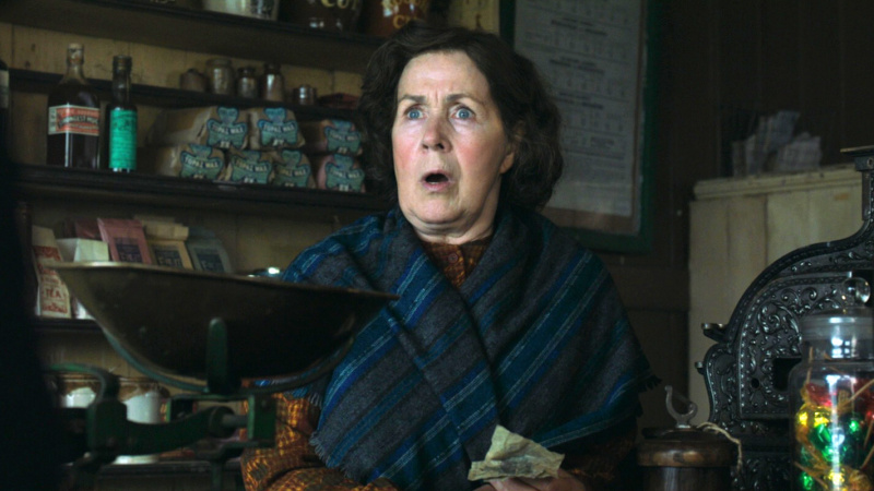 Впрочем, настоящая банши, принявшая образ загадочной и пугающей старухи, на острове есть - это миссис МакКормик, которую боятся все. Она и правда предсказывает смерти, и она в этом никогда не ошибается. Однако она не издает громких звуков, она свои предсказания делает самым обыденным голосом.