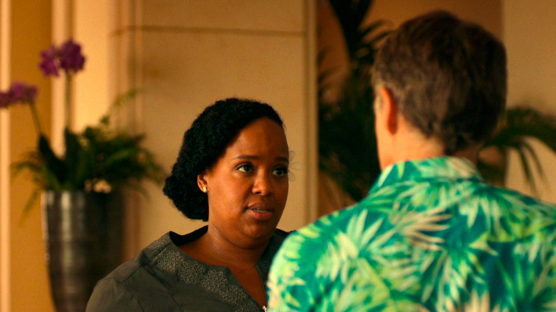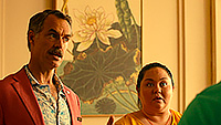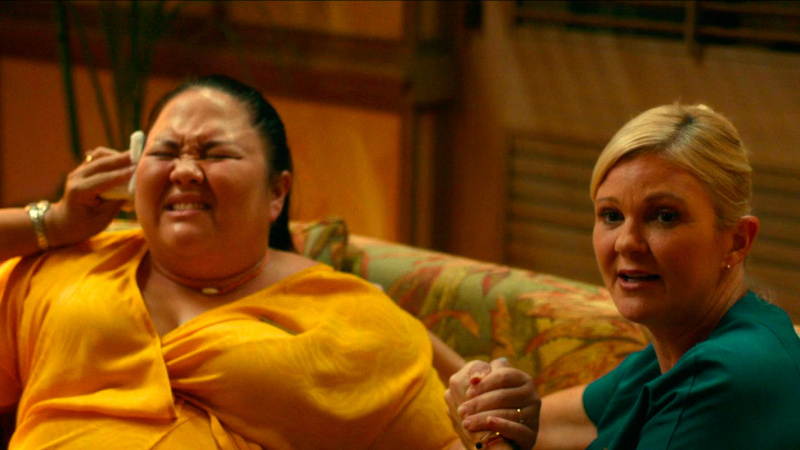 Ну и эмоционально нестабильная Таня в исполнении Дженнифер Кулидж - у меня, наверное, это самый любимый персонаж из богатеев. Она находится в полном раздрае, она носится с этой дурацкой урной с прахом матери, которую она ненавидела, но одновременно не может оправиться от ее кончины, она конкретно алкоголит без продыха - в общем, персонаж жизненный, реалистичный и симпатичный. И там у нее будет хорошая сюжетная (ни за что не напишу слово "арка") линия со служащей SPA отеля Белиндой, которую классно сыграла Наташа Ротуэлл: Таня, которую Белинда привела в чувство, обещает Белинде профинансировать ее собственный центр оздоровления, Белинда с ней носится после этого как с писаной торбой, но мы понимаем, что Таня свое обещание не выполнит - ну что с них взять-то, с богатеев?