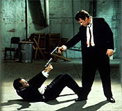 Однако что он "тот самый" - можно было увидеть еще в "Бешеных псах". Потому что это один из лучших криминальных триллеров, который держит зрителей в огромном напряжении от начала и до конца. Фильм очень жесткий и жестокий, весьма достоверный и предельно аскетичный. Квентин сознательно убрал из фильма все, что могло отвлечь внимание от тонкостей взаимоотношений персонажей, поэтому он выглядит как спектакль - практически все действие происходит в помещении заброшенного склада, причем большинство эпизодов снимается крупными и длинными планами.
