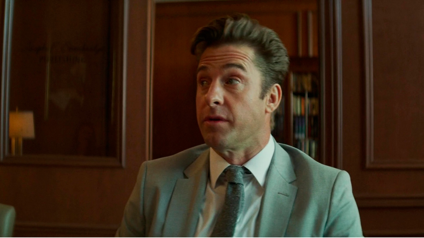 Да и сценарий, при всей шаблонности сюжета как такового, оказался не так уж и плох: он не сводился только к тому, как писатель в поездке свинячит (хотя свинячил он немало) и как Люси пытается со всем этим справиться, и в конце концов вырулил на достаточно симпатичную драмеди (это определение жанра все-таки больше подходит для подобного типа картин, чем обычная "трагикомедия") о преодолении конфликта поколений, о постепенной трансформации книгоиздательского бизнеса как такового, о влиянии социальных сетей на современную жизнь.
