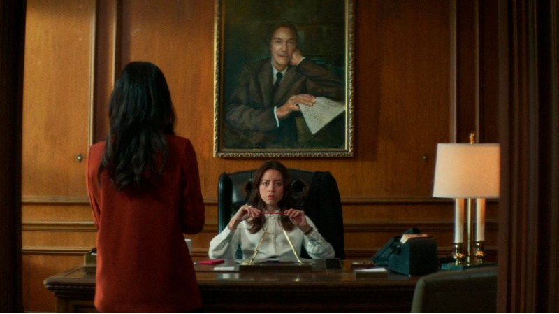 Здесь было очень важно, чтобы актриса смогла продемонстрировать то, как у Люси с Харрисом постепенно меняются отношения, как писатель понемногу начинает видеть в издательнице личность, а не просто надоедливую девчонку, которая заставила его тащиться в какой-то чертов книжный тур, и Обри это удалось показать очень хорошо.
