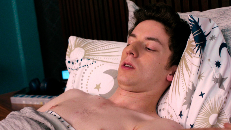 Очень понравился Эндрю Барт Фельдман в роли Перси. Ну прям совсем хорош: очень естественный, натуральный, стеснительный, рефлексирующий, но при этом - достаточно харизматичный и обладающий определенным внутренним стержнем. Ведет себя как типичный 19-летний подросток с гиперопекой родителей, при этом не собирается прогибаться, а в Мэдди просто находит в каком-то смысле родственную душу, с которой можно поделиться. Ну и заодно - расстаться с девственностью, раз уж она так настаивает. Или не расстаться - в любом случае, мы, как великодушные зрители, ту самую попытку засчитаем.