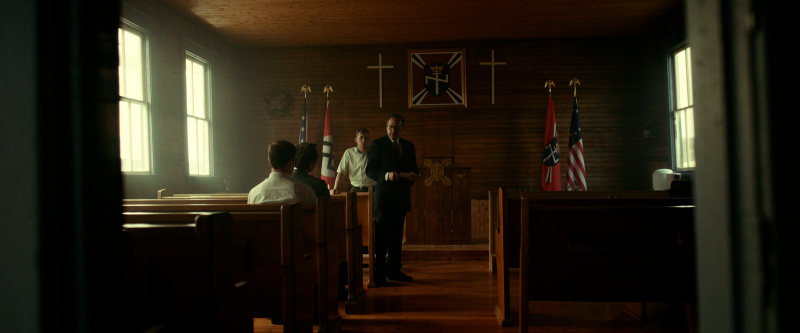 Ну и из всех остальных героев отмечу еще преподобного Ричарда Батлера, которого сыграл Виктор Слезак. Актер выступил в роли респектабельного нацика, который умеет воздействовать на свою паству, разглагольствует о революции и прочих вещах, однако живет в комфорте, закон не нарушает, и ему все это революционное дерьмо ни на фиг не нужно: его и так все устраивает, и он надеется в конце концов прорваться в Конгресс. Вот прям такой солидный дядечка получился - это что-то.