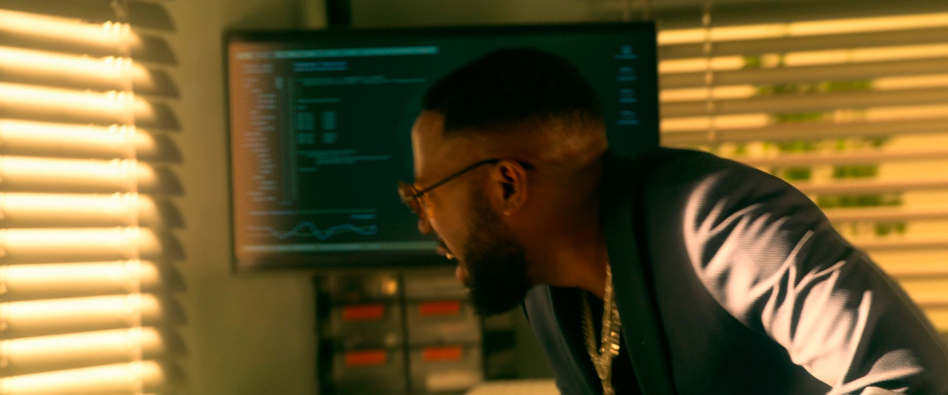 За едва проклевывающуюся юморную составляющую здесь отвечают два суперхакера. Один, Эрик, помогает Хартингу, и у него юмор на уровне "очень хочется увеличить себе член". Другой - уже реально прикольный суперхакер Уилфред (это уже примерно семьдесят пятый по счету прикольный суперхакер в боевичке), и в его роли самозабвенно оттягивается Ламорн Моррис, причем он еще и изображает прикольное британское произношение. Вот для него все-таки придумали забавные фразочки, жалко только, что во всей этой сценарной тоске Уилфред смотрится как абсолютно инородное тело.