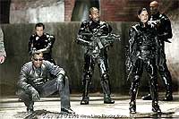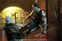 Что характерно, забавный фильмец. Совершенно идиотский, но забавный. Он явно лучше, чем "Блейд", о котором я даже писать не стал, хотя непонятно с какой радости посмотрел его от начала и до конца. Но сиквел - такой добротный отстой, что его даже вполне можно посмотреть. Гуилермо дель Торо рисковать не стал. Он просто соединил воедино свои старые ленты "Хронос" и "Мутанты" с не своими "Матрицей", "Невыполнимой миссией 2" , "Факультетом" и "Новыми приключениями неуловимых мстителей", в результате чего получился хоть и совершенно подражательный, но забавный боевичок-триллер, который нужно смотреть как мелодраму, в результате чего получаешь просто несказанное удовольствие.