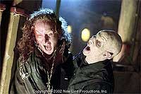 Среди вампиров также есть, безусловно, весьма достойная роль: Рон Перлман, играющий боевитого вампира Рейнхартда! Вот это колорит! Вот это типаж! Отлично придуман, скрупулезно проработан, прекрасно воплощен! Ну, Перлман вообще силен в подобных ролях, и здесь просто его звездный час, однозначно! Я даже не знаю, кому тут отдать пальму первенства - Снайпсу или Перлману. Пожалуй, даже Перлману. Потому что он играет Плохого, а Плохого надо уметь сыграть так, чтобы я даже не знал, кому отдать фикус первенства.