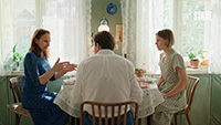История Арины с Ростиком была не такой камерной, и в нее были вовлечены некоторые другие люди. Диалоги там попроще, но тут была рассказана интересная история достаточно безликого знакомства двух совершенно разных людей, их участия в представлении, играемом для мамы Арины, и того, как между ними зарождались уже совершенно новые чувства.