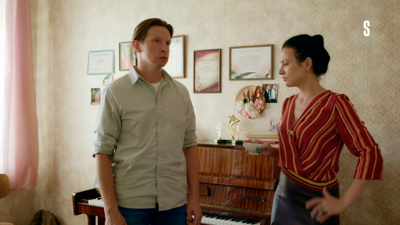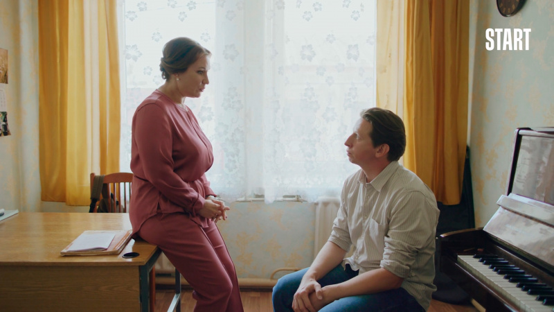 А ведь это на первый взгляд очень простенький и совсем недорогой сериал! Сценаристы разговаривают о том о сем, сидя в небольшом офисном помещении, история Арины и Славы происходит в основном в квартире мамы и в музыкальной школе - все очень камерное, и это почти спектакль. (Виктор Шамиров в том числе театральный режиссер, поставивший порядка двух десятков спектаклей.)