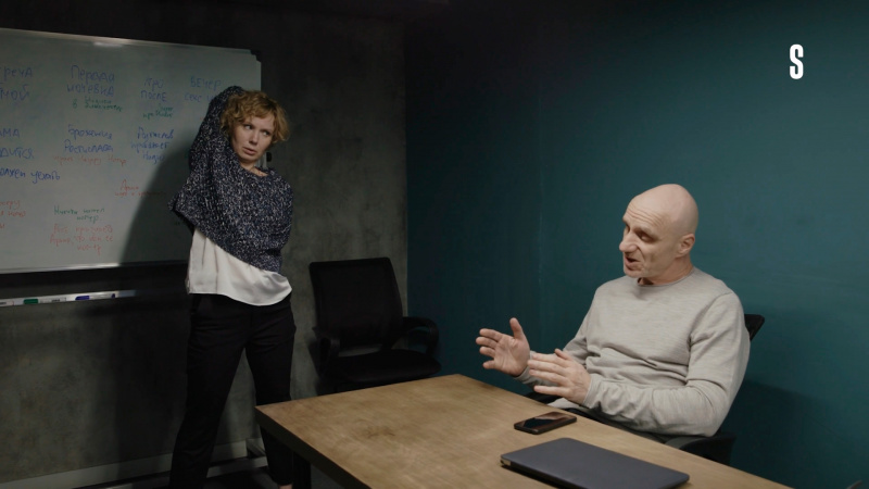 Мне же очень понравились оба направления. Разговоры сценаристов были крайне интересными, и там кроме показа самой сценаристской "кухни" (на которой, впрочем, внимание никак не акцентировалось) разыгрывался целый срез жизни двух людей, которые не смогли быть вместе, но чувства которых друг к другу не угасли, и нынешняя ситуация, когда они работают вместе, их, с одной стороны, тяготит, однако, с другой стороны, их это одновременно определенным образом "заводит". И там кроме просто-таки классных диалогов есть несколько моментов, которые поразительно тонко и чувственно сыграны - это было очень здорово! (Замечу, что и Виктор, и Ольга также профессиональные актеры.)