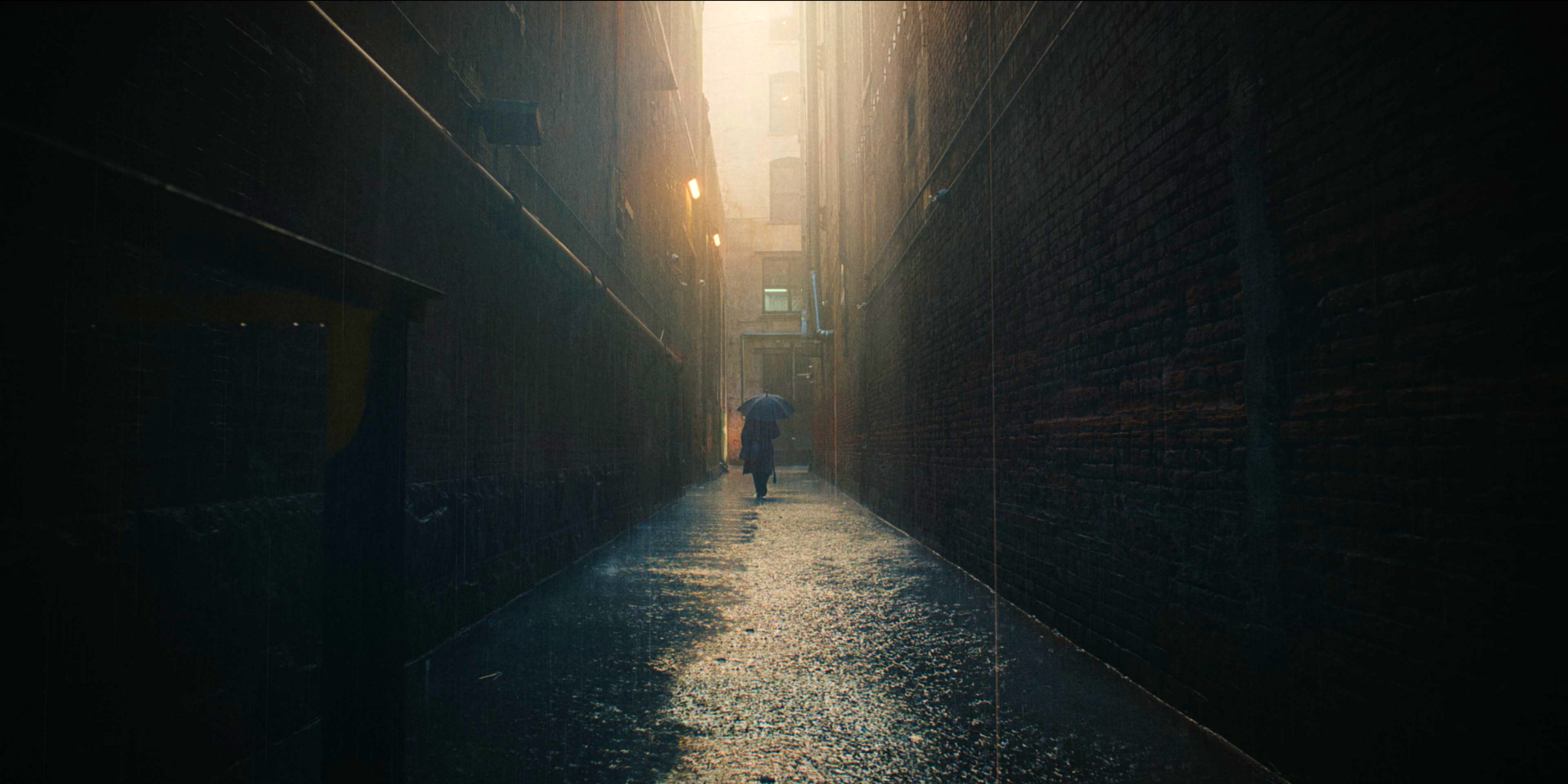 Так что все тут какое-то плоское и двумерное. Но - красивое, да, этого не отнять. Интересные цветовые решения, разнообразные постановочные решения - то фактически мюзикл, то абсолютно пустая сцена как бы иммерсивного театра, многочисленные отсылки к Хаяо Миядзаки - ярко-желтые и красные зонты, одинокая дверь посреди густого леса, - это сделано хорошо. Плюс это еще сопровождается музыкой композитора Дзе Хисаиси, который писал музыку к большинству анимаций Миядзаки.