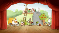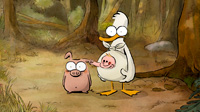 Отделение первое. Обнаглевшему Аисту не хотелось лететь еще несколько километров, чтобы доставить девчушку Полин ожидающим ее родителям, поэтому он приземлился в деревеньке, где живет трудолюбивый Поросенок (Дамьен Витецка) с повышенной социальной ответственностью и попросил Поросенка доставить девочку по назначению.
