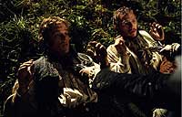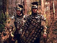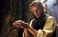 Трактовка характеров персонажей ясности не добавляет. Немцы братья Гримм друг друга почему-то называют на американский манер - Уилл и Джейк. Дэймон в роли Вильгельма в полном соответствии со своей внешностью, которую негодяйские Вайнстины не позволили изменить, играет прагматичного фермерского сынка. Хит Леджер, которого я опознал только на самых последних кадрах, когда он снял очки, изображает мечтательного юношу со взором горящим. Красотка Лина Хиди вообще ничего толком не играет - она не умеет. Но бегает туда-сюда, создает оживляж.