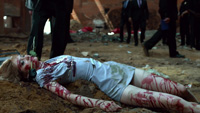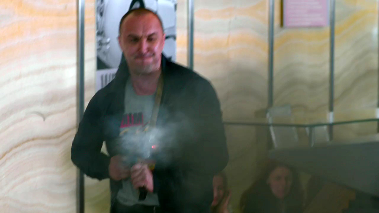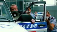 Предводитель нападающих выводит заложника и расстреливает его на глазах Милицейского Начальника. При этом требует бронированную машину, иначе он будет каждые три минуты убивать по заложнику.