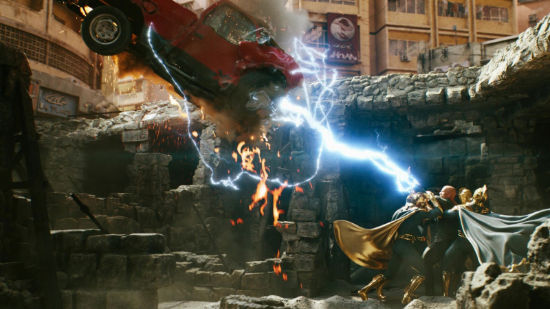 Что вам на это сказать? С одной стороны, это, конечно, совершенно неоригинальный кинокомикс-кинокомикс (тавтология используется для усиления ментального эффекта), пропустив который вы вряд ли что-то потеряете в этой жизни, но, с другой стороны, это все бодренько, спецэффектно (200 миллионов бюджета явно пошли не только на гонорар Дуэйну Джонсону; кстати он за роль получил свои более или менее обычные $22,5 миллиона плюс еще какие-то пару миллионов как продюсер), а главное - реально забавно. Ну да, тут видно, что старались шутить и относиться ко всему этому иронично, но шутили неплохо, а некоторые хохмы были прямо-таки реально совсем веселые, как с определенными эпизодами, связанными с Адамом и сынишкой Адрианны Амоном (его сыграл Бодхи Сабонгуй), с братом Адрианны Каримом (Мохаммед Амер), а также с этим "Обществом справедливости" и особенно с Атомом Крушителем.