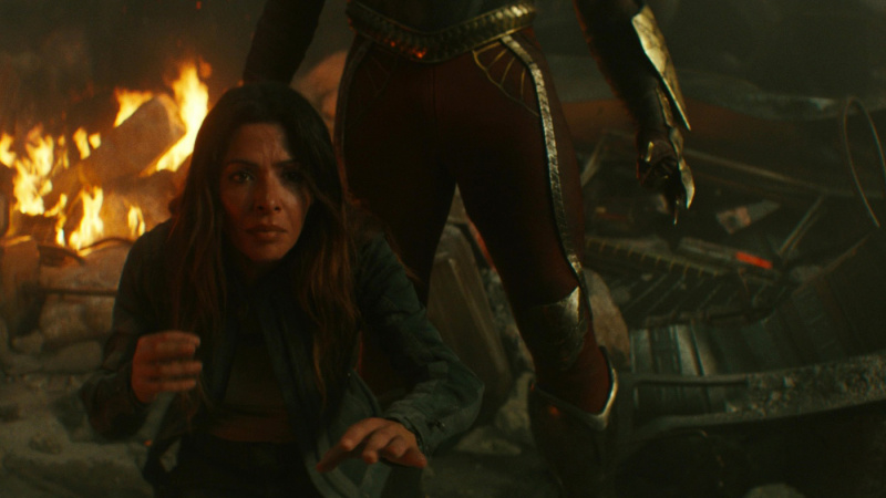 Из остальных персонажей: Сара Шахи в роли пылкой и боевой Адрианны - понравилась, Бодхи Сабонгуй в роли Амона - тоже был очень даже хорош. Кстати, тут некоторые зрители и критики распинались в стиле "они специально ввели подростка в качестве напарника супергероя, чтобы подросткам понравилось - какая дешевка", и я им очень скромно и кротко напомню, что в "Индиане Джонс и Храм Судьбы" тоже был подросток Коротышка (его сыграл Джонатан Ке Кван), который помогал главному герою, но Спилбергу с Лукасом почему-то никто претензии по этому поводу не предъявлял. Но, знаете, времена - они меняются.