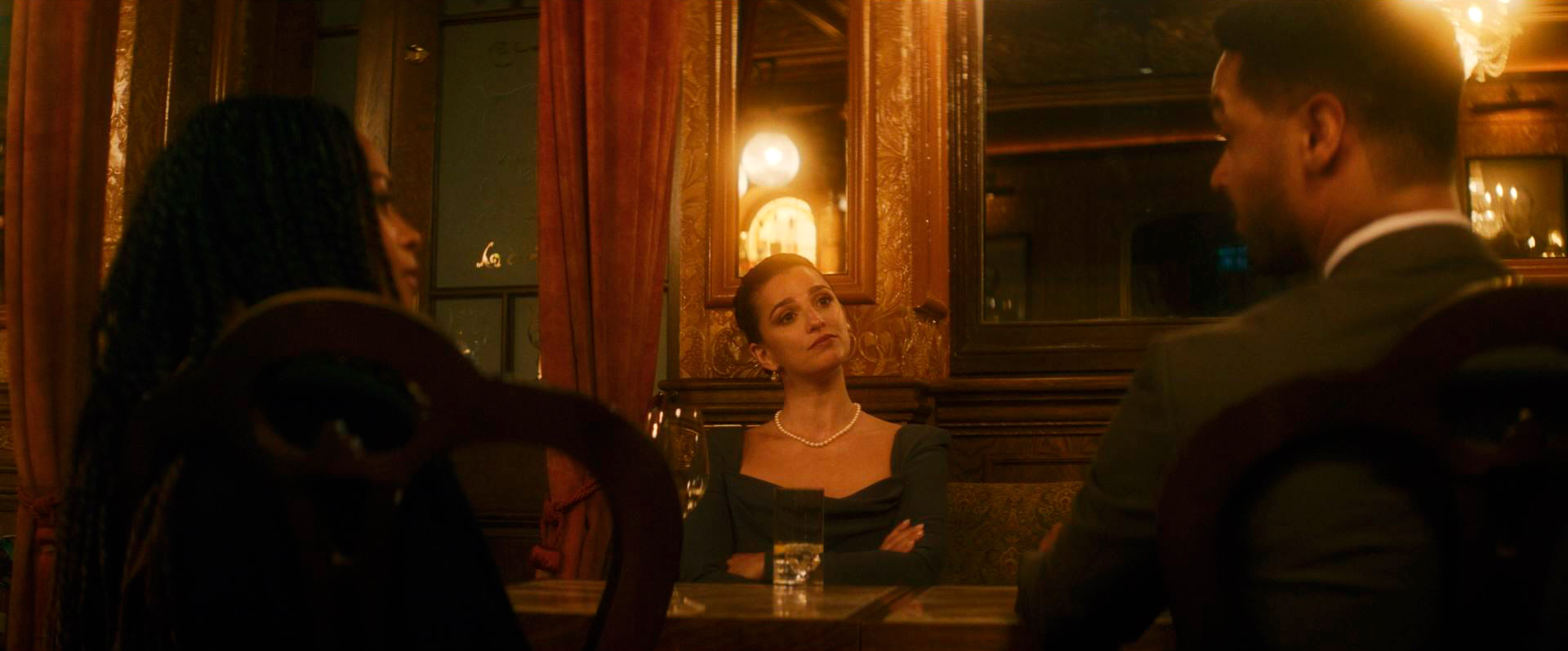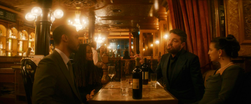 Антураж (особенно дом Вудхауса и столовая) сделан и снят просто классно, там со столом, где проходили два знаковых ужина, были сделаны интересные конструкторские и операторские решения, костюмы персонажей обращают на себя внимание, аудиотрек (за плейлист отвечала супруга Майкла Фассбендера актриса Алисия Викандер, а композитором был Дэвид Холмс) - впечатляющий, так что в итоге посмотрели это все с большим удовольствием.