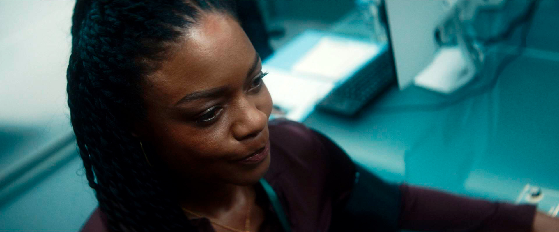 Вообще бесит типовой прием, используемый в массе фильмов - берем мутную картинку с камеры наружного наблюдения, тыкаем пальцем в мелкую деталь, занимающую полпроцента кадра, просим оператора увеличить и вуаля, получаем макроснимок этого участка с разрешением в мегапиксели. В "Черном чемодане" этот лайфхак вывели на совершенно новый уровень.